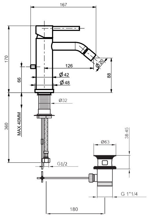 | Высота излива | 88 мм / 170 мм |
