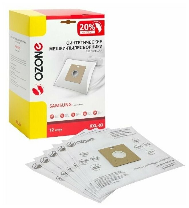 Отзывы на Пылесборник OZONE XXL-03 для пылесоса SAMSUNG синтетическа, многослойный (тип оригинального мешка: VP-77.) 12 шт + 2 микрофильтра