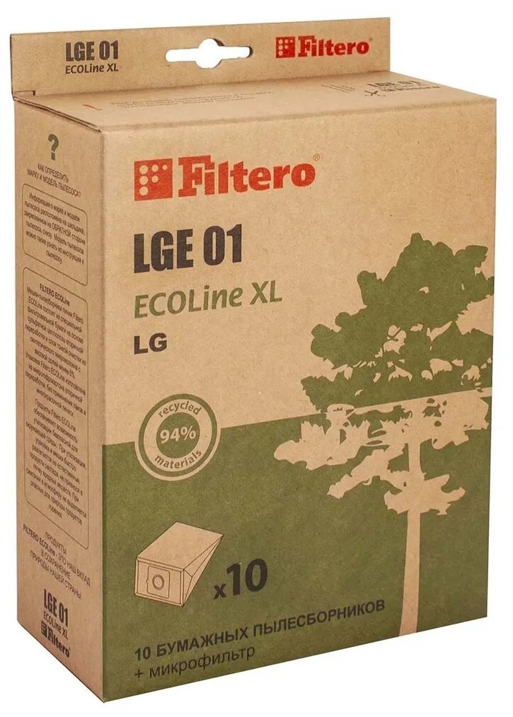Filtero LGE 01 ECOLine XL, Мешки - пылесборники для пылесосов LG, SCARLETT, бумажные (комплект: 10 штук + фильтр)