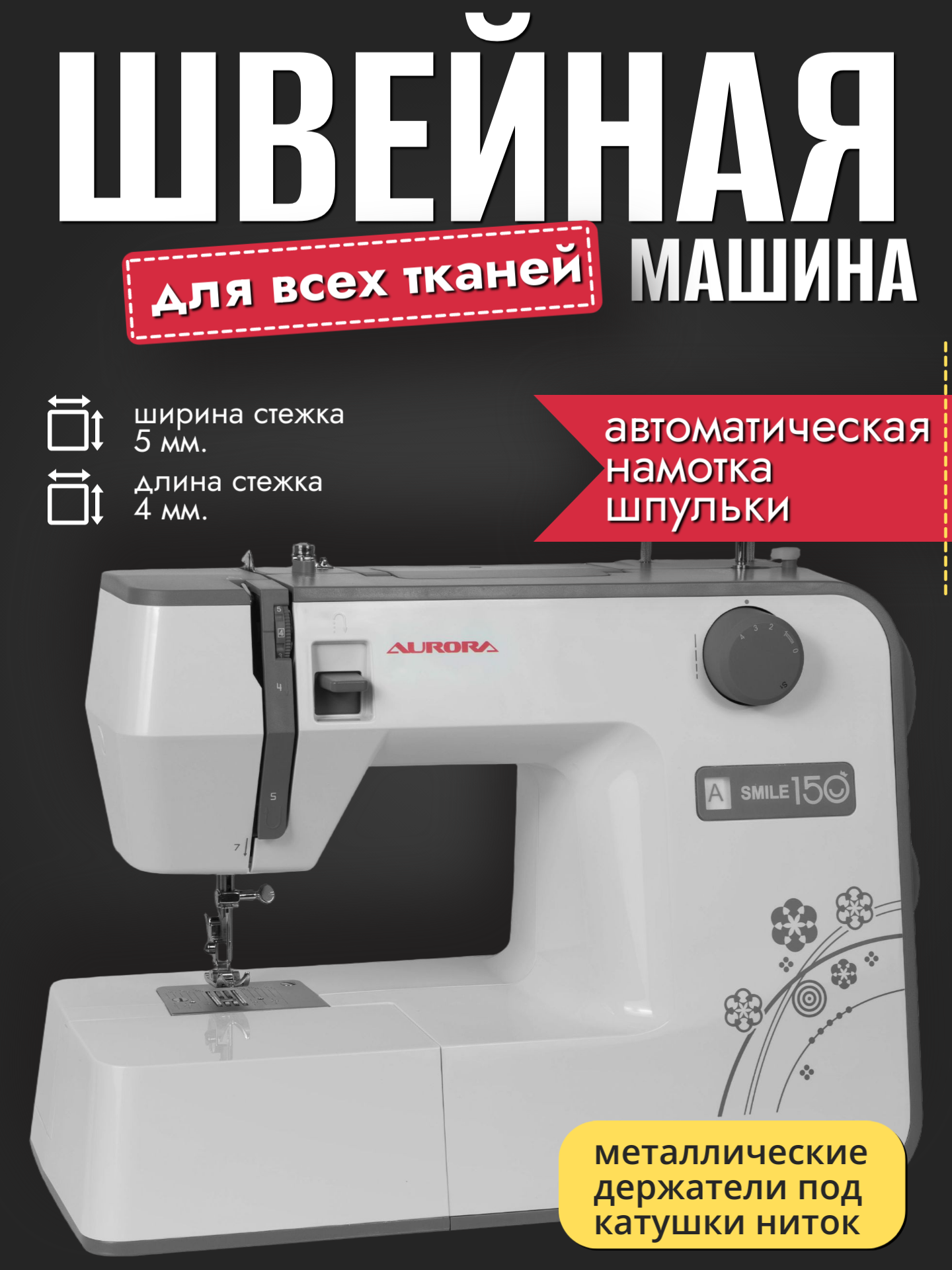 Отзывы на Швейная машина Aurora Smile 150 / с вертикальным челноком / петля полуавтомат / для всех типов тканей / 70 Вт / 19 операций / LED подсветка / реверс
