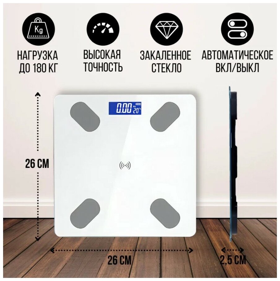 Весы напольные для ванной / умные-весы с bluetooth управлением Цвет: Белый информация: