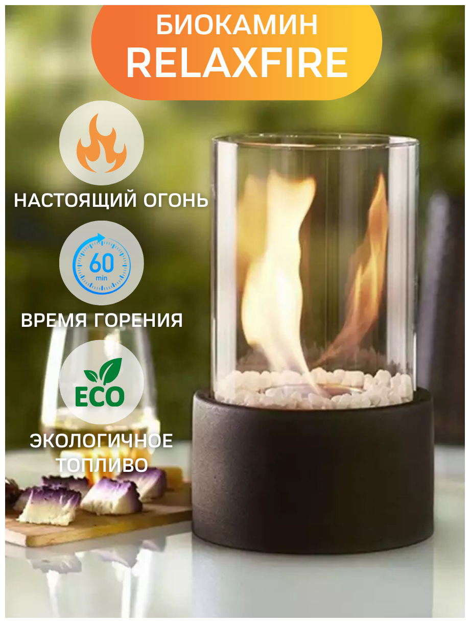 RELAXFIRE / Черный / 27 см / Диаметр 14 см / Биокамин настольный / Биокамин круглый информация:
