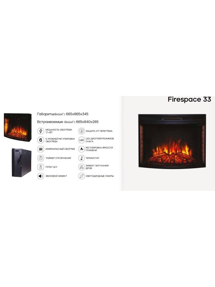 10 цен на Электрокамин Real Flame Country 33 WT-614 с очагом Firespace 33 S IR