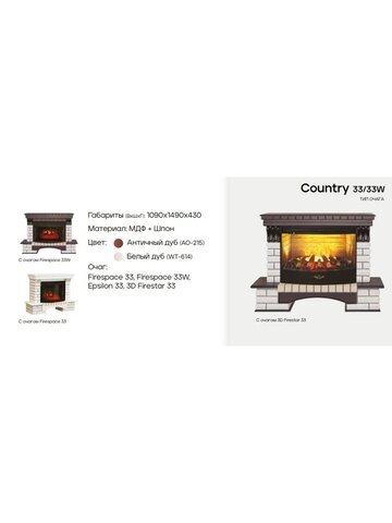 Электрокамин Real Flame Country 33 AO-215 с очагом Firespace 33 S IR информация: