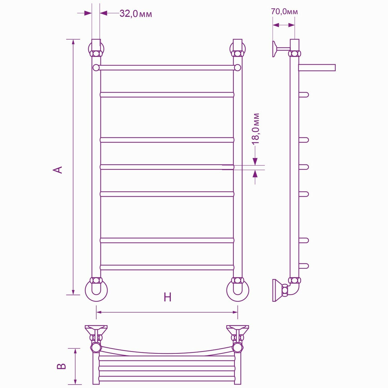 Полотенцесушитель ZOX ЛЦ 80х50 1'' полка 7 перекл ДУГА-2 нижнее подкл (крепеж, без монт комп) В5 информация: