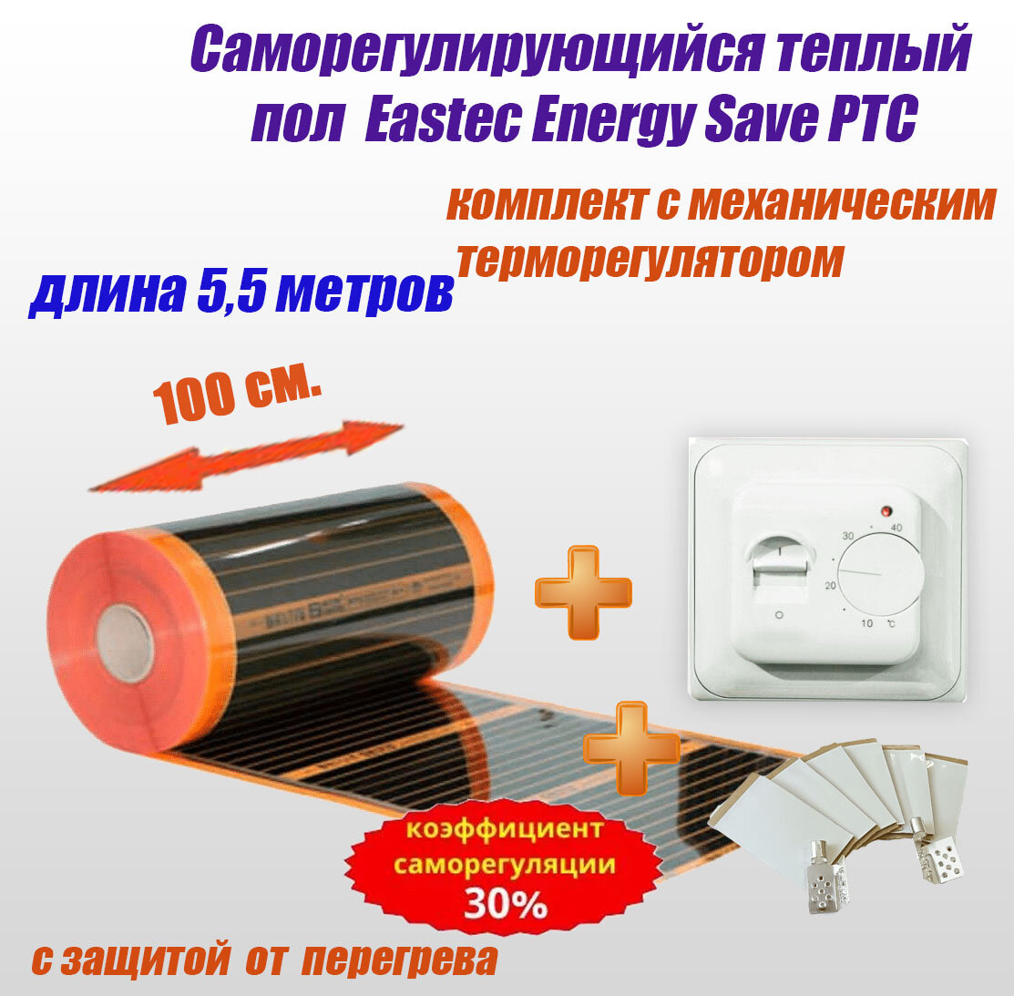 10 цен на Комплект термопленка Eastec Energy Save PTC 100 ширина 1 метр длина 5,5 метров с механическим терморегулятором RTC 70.26