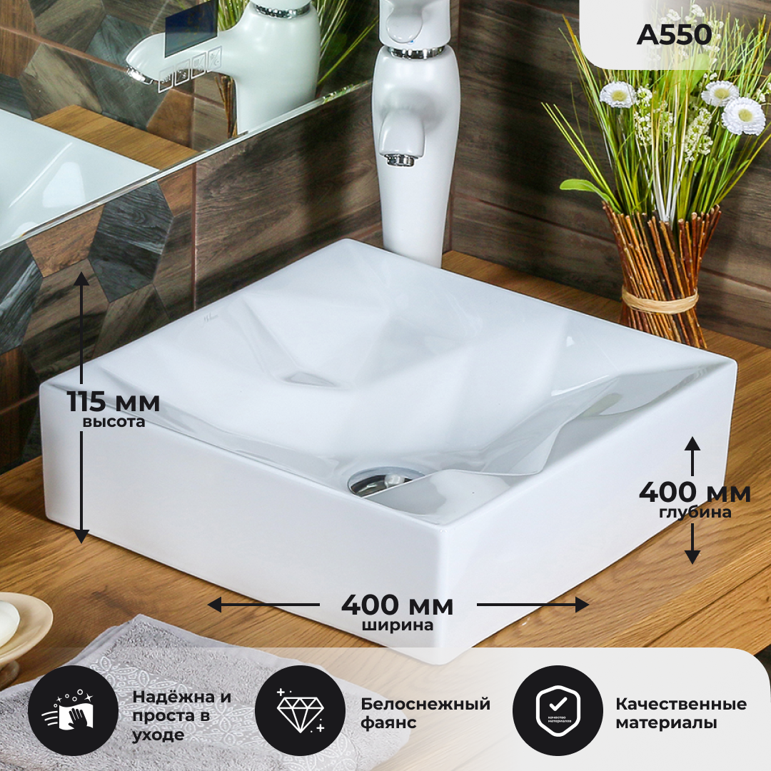 Накладная-подвесная раковина для ванной Lavinia Boho Bathroom Sink 33311023: прямоугольная, ширина умывальника 40 см, цвет глянцевый белый