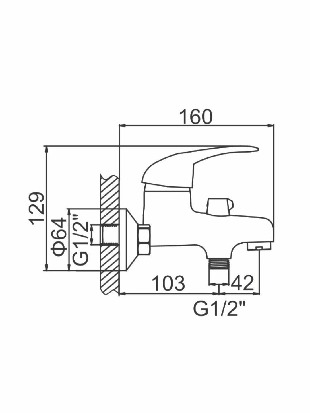 Смеситель на раковину настенный Эверест B46-350 с круглым поворотным изливом, кран-буксы 1/2", хром