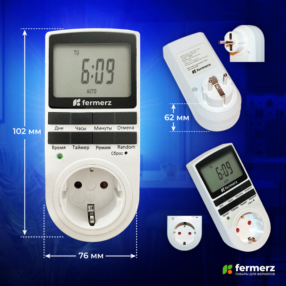 | Дополнительная информация | Память до 10 программ. Функция «Random» - позволяет произвольно включать и отключать питание в ночной период времени — очень практичное решение для имитации присутствия в доме, когда хозяева отсутствуют. Например на даче. |