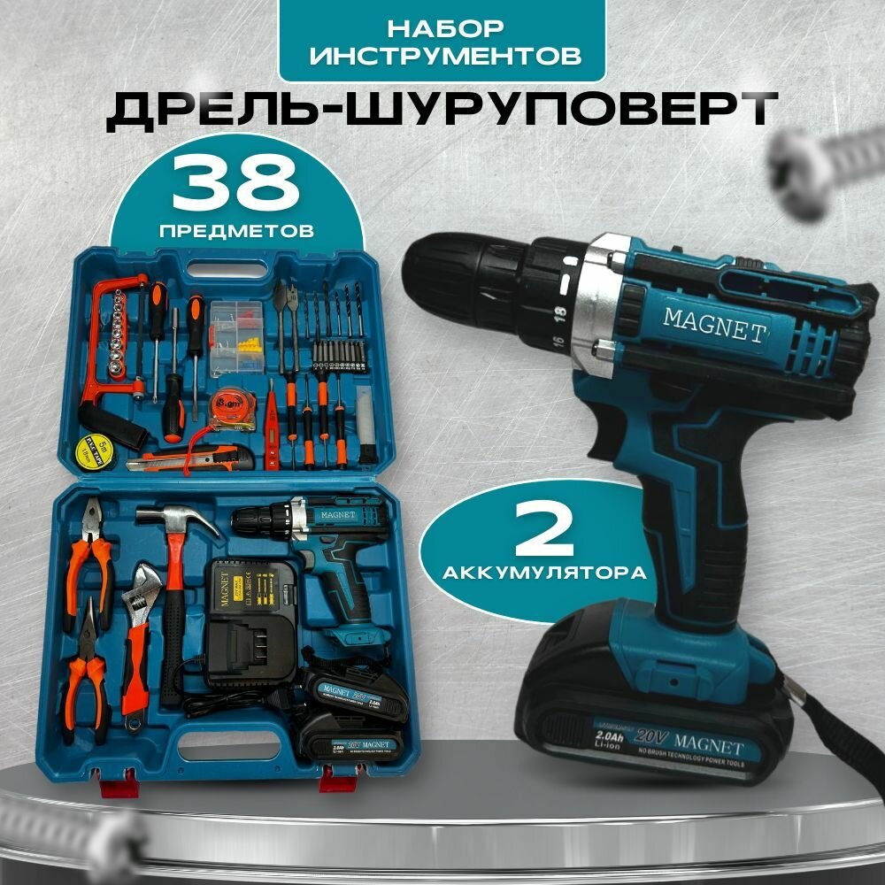 10 цен на Дрель шуруповерт аккумуляторный MAGNET 21В Li-Ion с набором инструментов