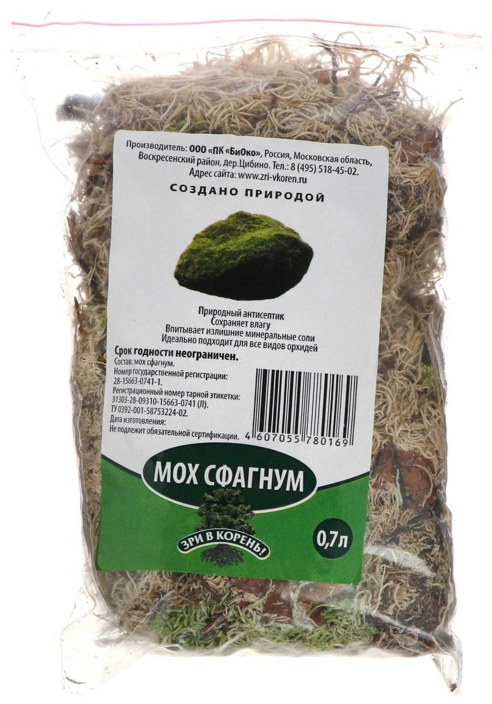 Мох-сфагнум "Дядя Удобряй", 0,7 л
