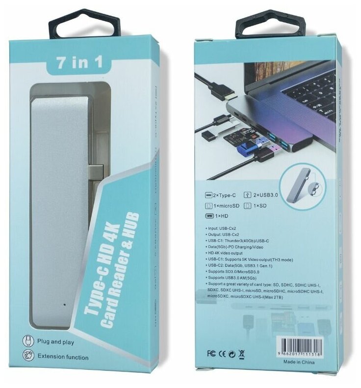 USB-концентратор (адаптер, переходник) Aluminum Type-C 7 в 1 (Gray) для MacBook 13 информация: