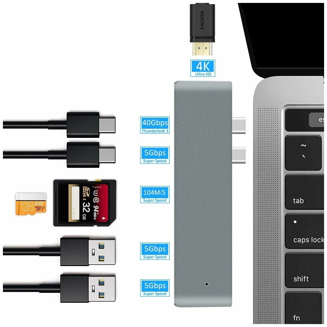 10 цен на USB-концентратор (адаптер, переходник) Aluminum Type-C 7 в 1 (Gray) для MacBook 13