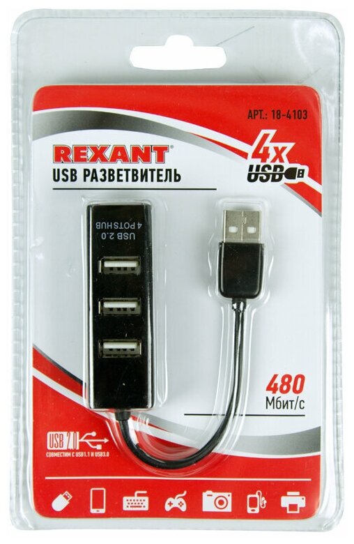 Usb-хаб REXANT (18-4103) 4 порта, черный