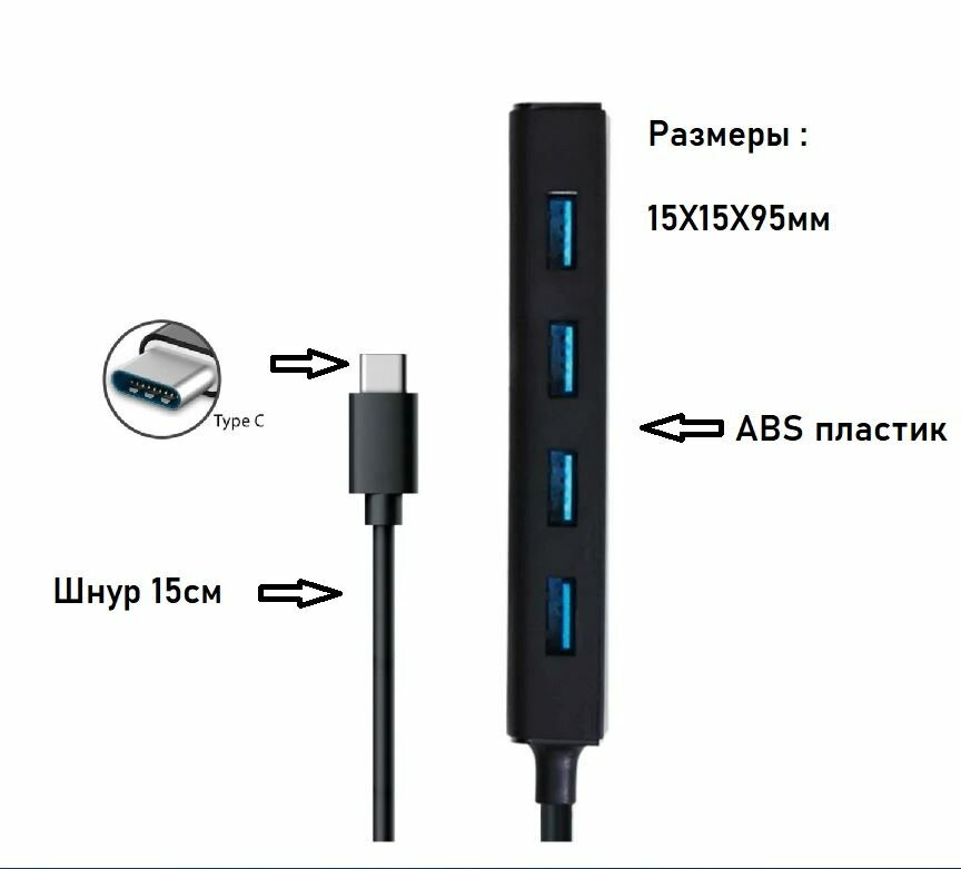 10 цен на USB Type-C разветвитель, 4 порта, OTG / концентратор / Hub / USB Хаб, черный