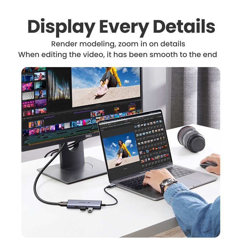 Отзывы на Мульти Хаб Ugreen CM478 (20955) USB-C to HDMI+4xUSB 3.0 A without PD Converter серый