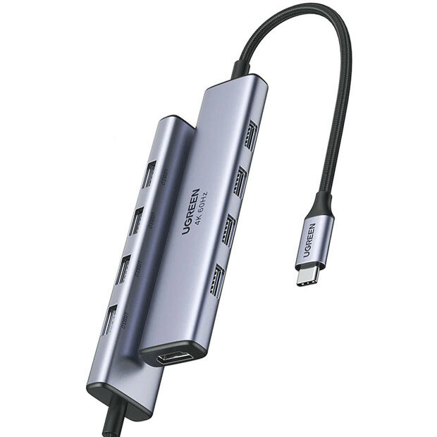 10 цен на Мульти Хаб Ugreen CM478 (20955) USB-C to HDMI+4xUSB 3.0 A without PD Converter серый