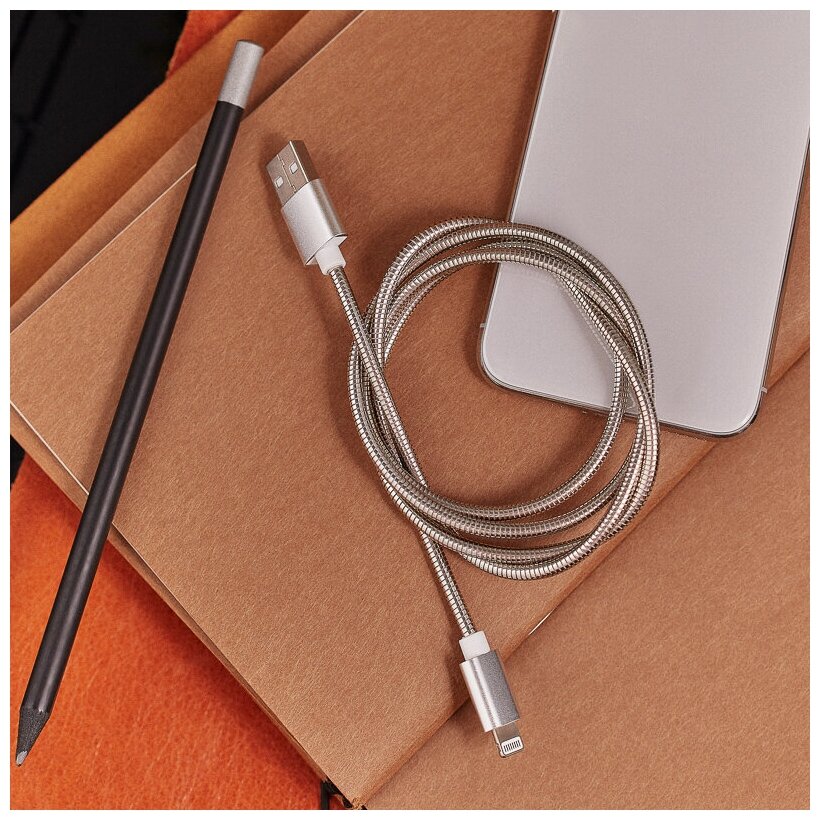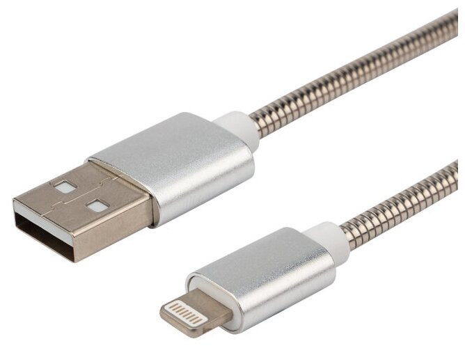 10 цен на USB кабель в металлической оплетке для iPhone с разъемом lightning REXANT, цвет: Серебристый