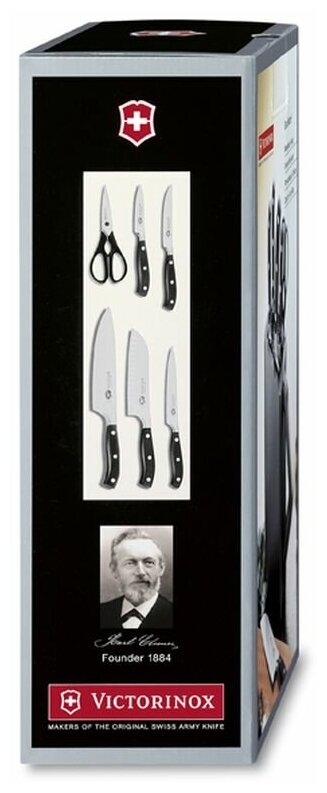 Набор VICTORINOX из 6 кованых кухонных предметов: 5 ножей и ножницы, в подставке из бука 7.7243.6