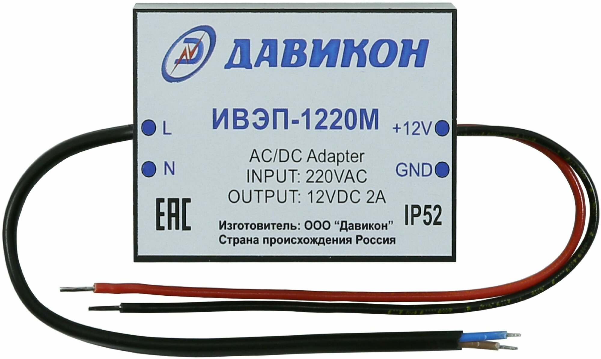 Блок питания Давикон ИВЭП-1220М стабилизированный 12В 2А, скрытая установка в подрозетник, для видеонаблюдения, свет. лент, эл. замков и домофонии.