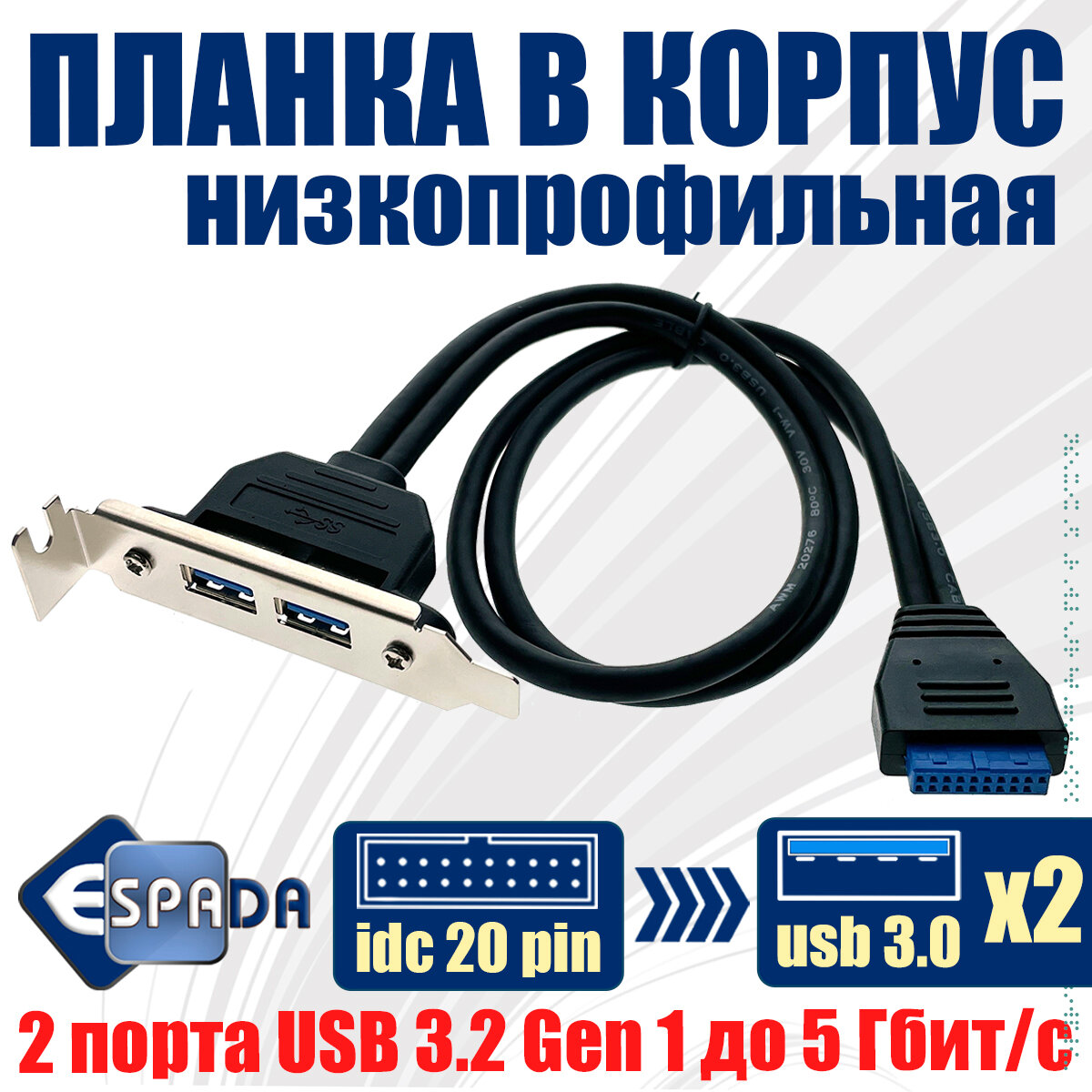10 цен на Планка (bracket) портов в корпус – 2 порта USB 3.0 низпрофильная (low profile) Espada модель: EBRT-2USB3LOW