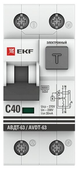 Отзывы на Выключатель автоматический дифференциального тока (дифавтомат) АВДТ-63 40А 30мА (хар.C, электронный тип А) 6кА (DA63-40-30e) EKF