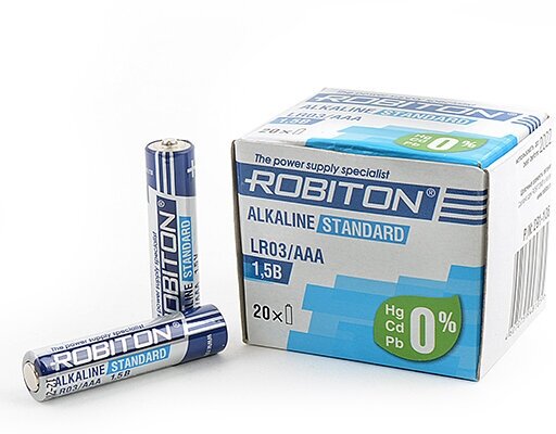 Батарейка ROBITON Alkaline Standard LR03/AAA, в упаковке: 20 шт.