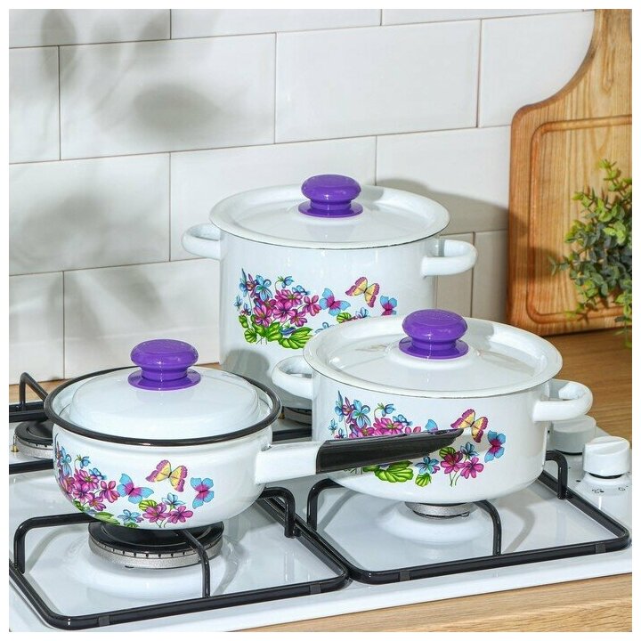 Набор посуды эмалированной "Фиалки", 3 предмета: кастрюли 2 л, 3,5 л, ковш с крышкой 1,5 л 4 883 ₽