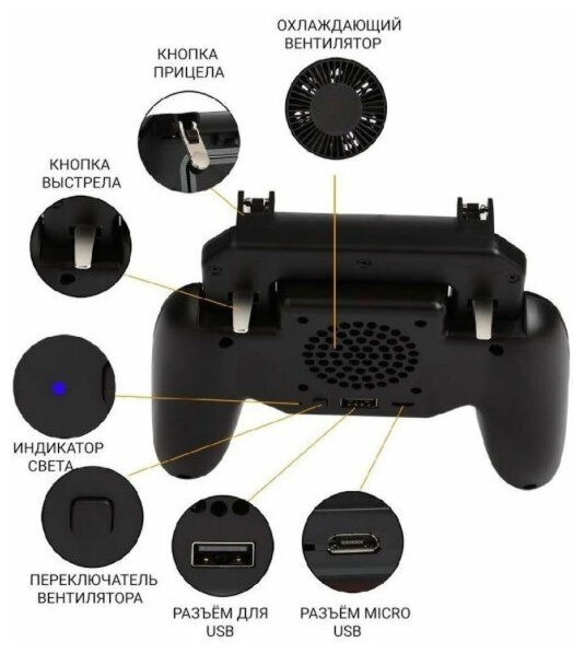 Геймпад / Триггер накладной для смартфонов PUBG SR 2000 mAh с охлаждением и PowerBank, черный информация: