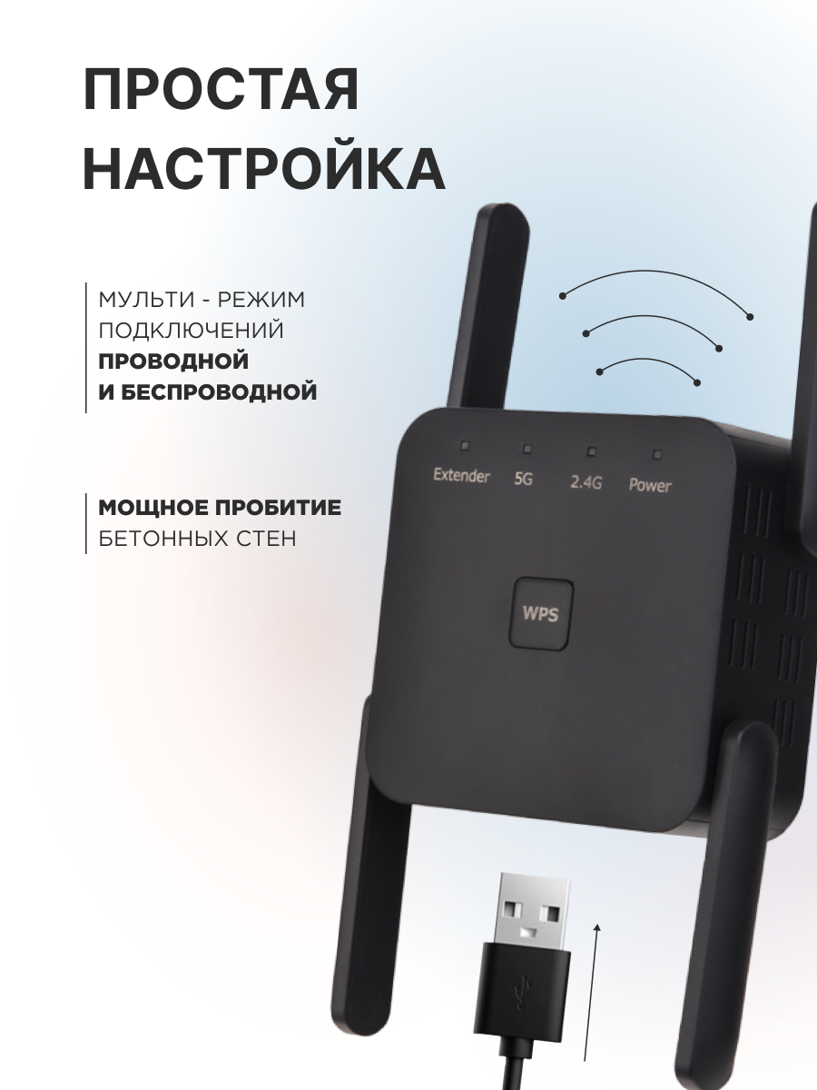 Отзывы на Ретранслятор/усилитель wifi, двух диапазонный 2.4 / 5 ГГц, Wi-Fi AP,четыре антенны, цвет Черный