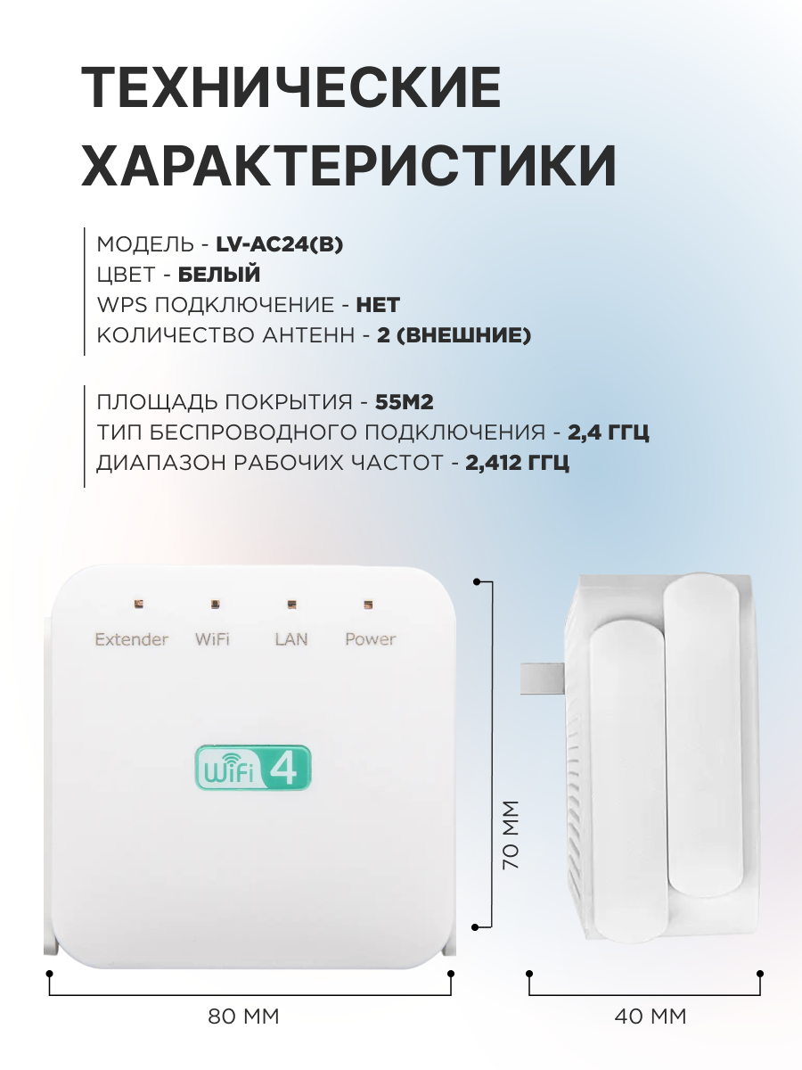 Ретранслятор/усилитель wifi, 2.4 ГГц, Wi-Fi AP, две антенны. информация:
