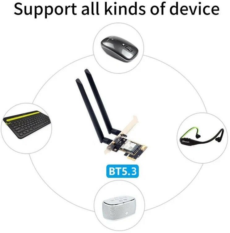 Характиристики этого товара не найдены!Отзывы на Сетевой адаптер Intel AX210NGW Wi-Fi 6E (Gig+) AX3000, Bluetooth 5.3, PCI-Express, 2 внешние антенны