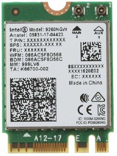 Отзывы на Адаптер Intel Wireless-AC 9260, 2230, 2x2 AC+BT, Gigabit, No vPro®,999LV6