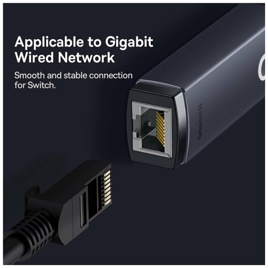 Сетевой адаптер Baseus Lite Series Ethernet Adapter USB-A to RJ45 LAN Port (1000Mbps Aluminum Alloy) Grey (WKQX000113)