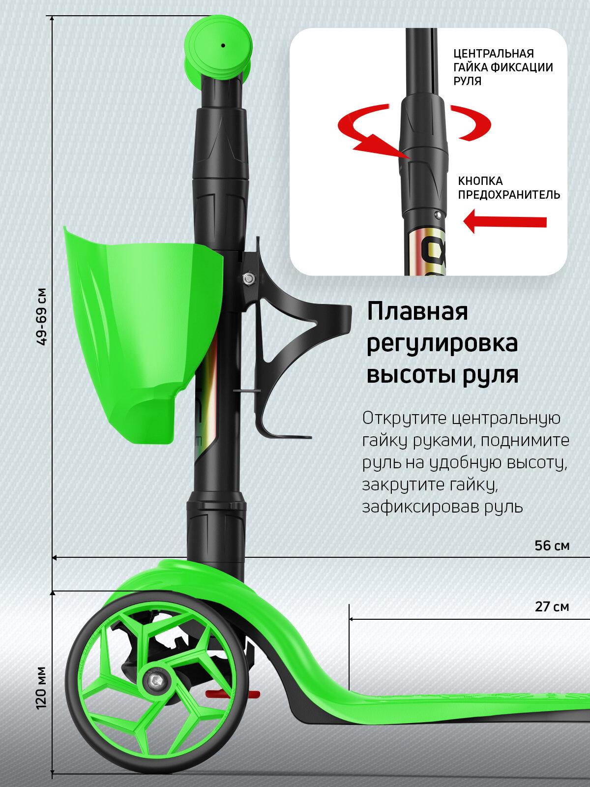 Самокат, самокат трехколесный детский, с корзинкой и подстаканником для бутылок, Alfa Mini, зеленый флюр 2 390 ₽