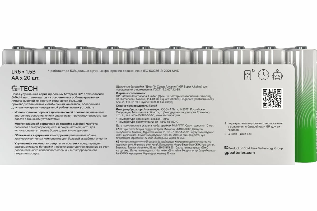 Батарейка GP Super Alkaline AA, 20 шт. информация: