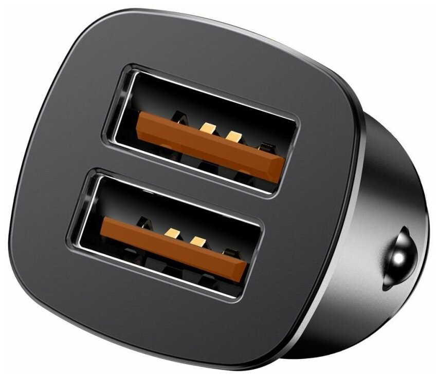 Автомобильное зарядное устройство BASEUS Square metal, 2USB, 5A, 30 Вт, черный, быстрая зарядка