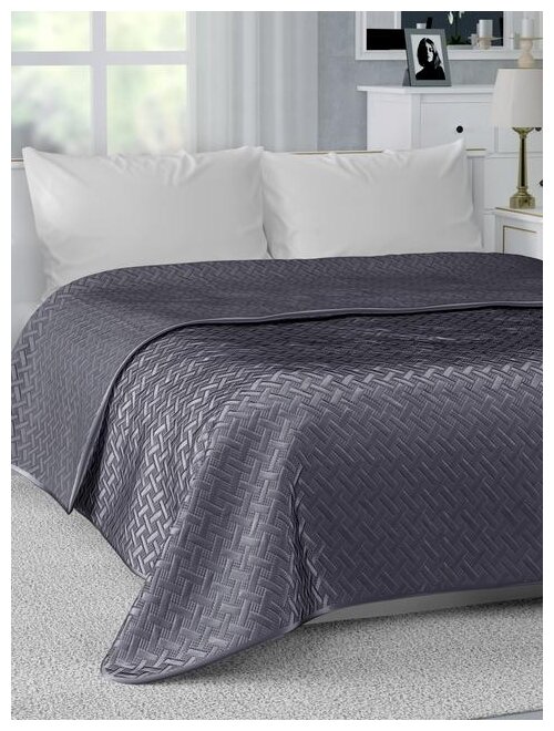 Покрывало на кровать 240х260 см с наволочками велюр MAXI ADRIA SMOKE