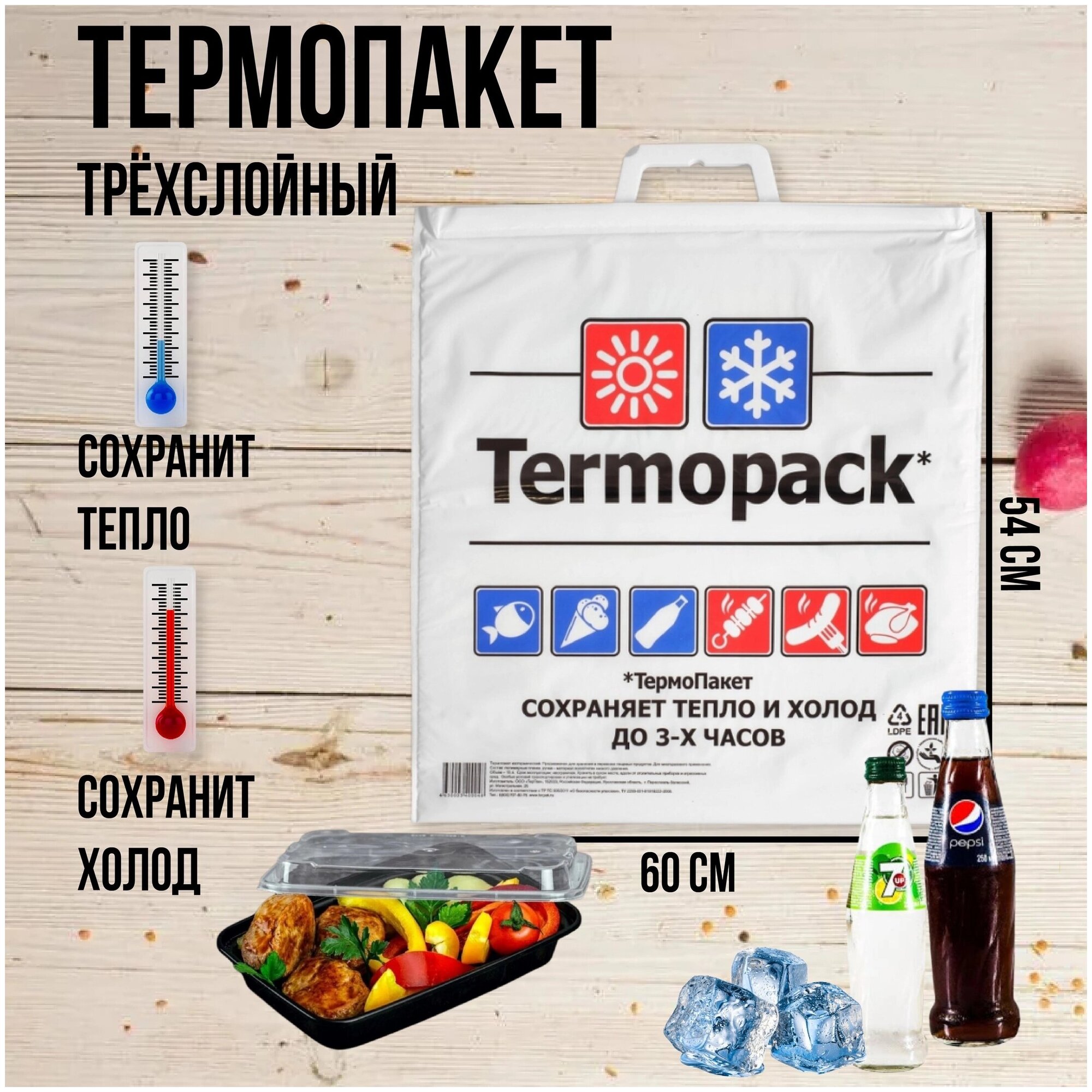 Термопакет ТерПак Биг Стандарт без ручки 60х55 см, упаковка 3 шт.