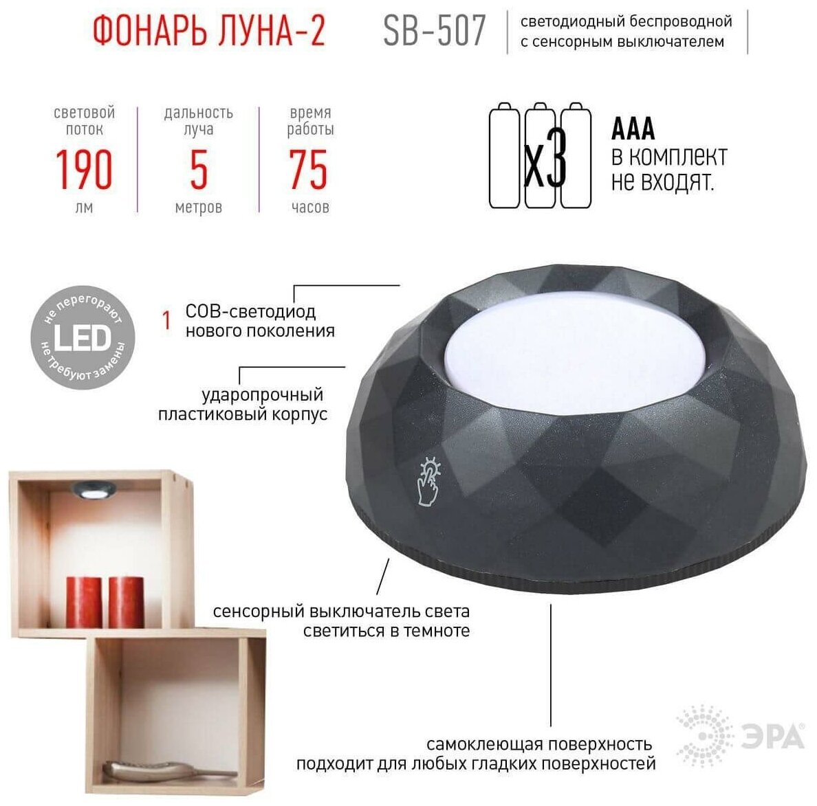 Фонарь светодиодный Эра SB-507 пушлайт Луна с сенсорным выключателем 3xAAA, черный