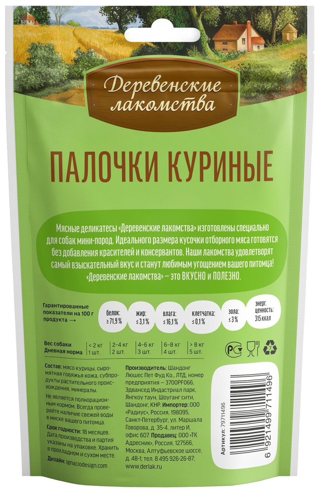 Лакомства деревенские "Палочки куриные" для собак мини-пород, 55 г