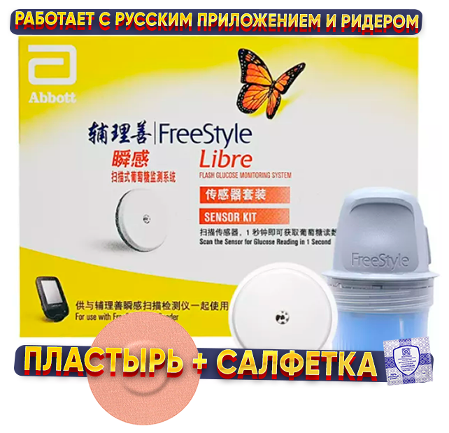 10 цен на Сенсор FreeStyle Libre 1 Азия, работает с русским ридером+Librelink, 1 шт