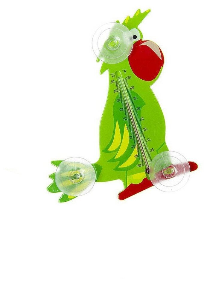 Термометр уличный "Попугай" / Термометр на окно, зеленый информация: