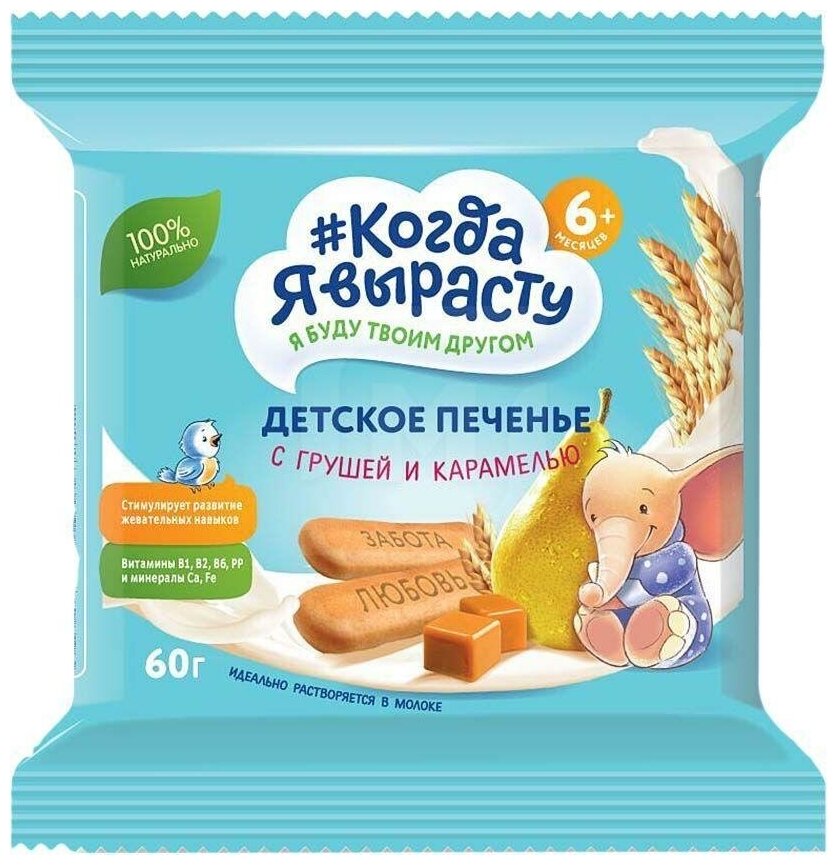 Отзывы на Когда Я вырасту Печенье детское, С грушей и карамелью с витаминами и минералами,растворимое,60г