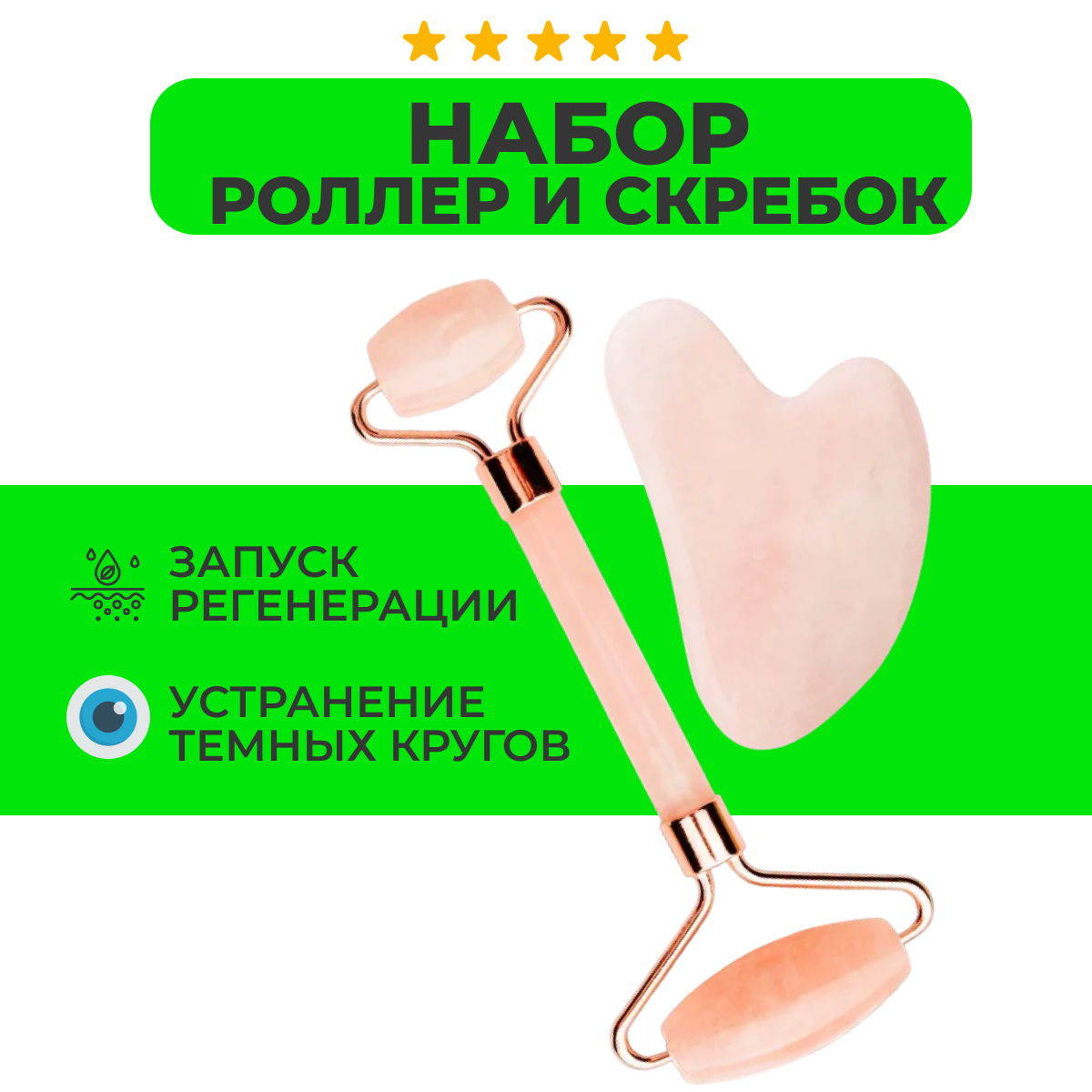 Отзывы на Набор массажный роллер + скребок Гуаша из натурального розового кварца, высший сорт (528-1573)