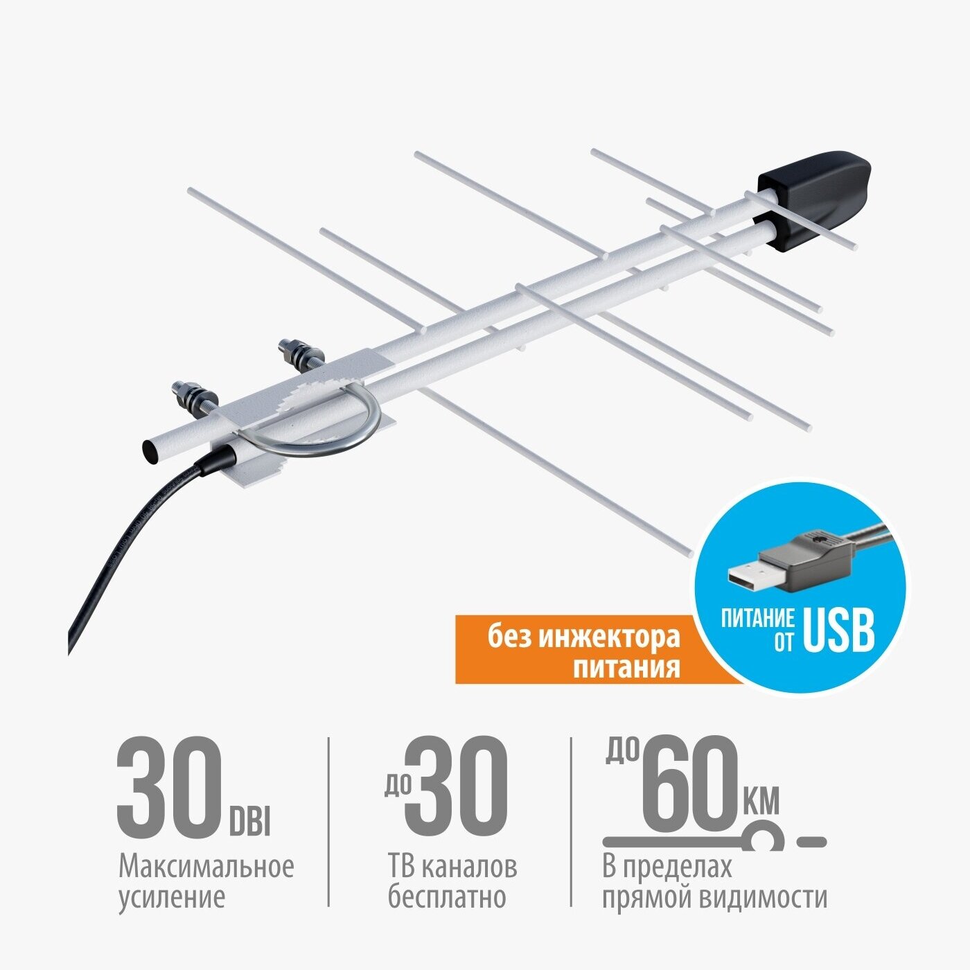 Телевизионная антенна BAS-1109-USB Селена-мини активная, наружная, с кабелем 10 м информация: