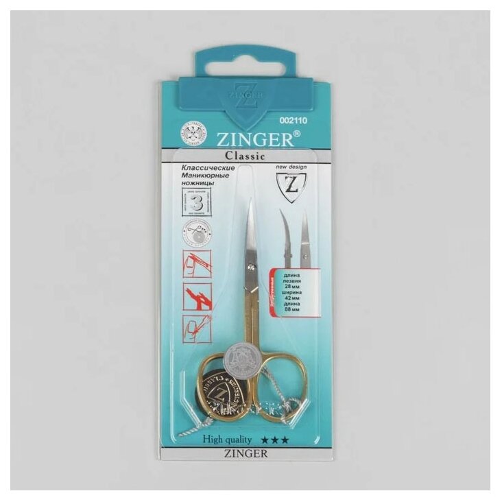 ZINGER Ножницы маникюрные, загнутые, узкие, 9 см, на блистере, цвет серебристый, В113-D-SH 856 ₽