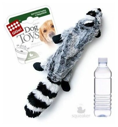 Игрушка-шкурка для собак Енот с бутылкой с отключаемой пищалкой 52 см GiGwi серый (1 шт) информация:
