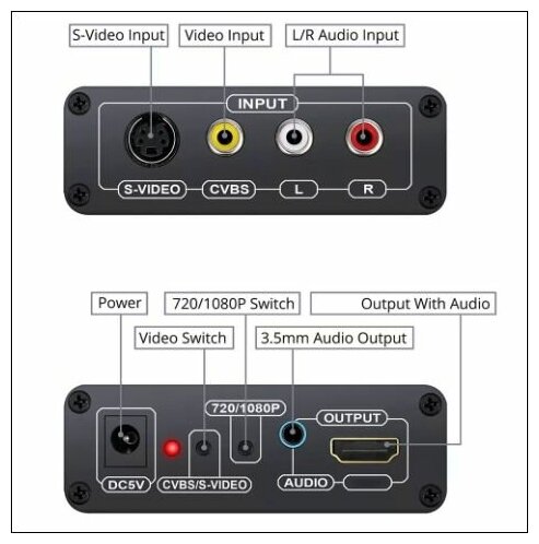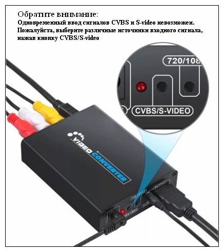 Конвертер из 3RCA-S-VIDEO в HDMI от сети 220в информация: