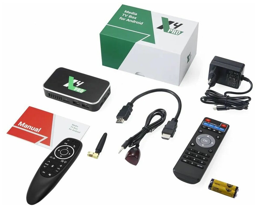 | Подробная комплектация | UGOOS X4 Pro, пульт c голосовым управлением G10S PRO, Инструкция, Адаптер питания (DC 5 В / 2,5 A), HDMI кабель, WiFi антенна, ИК пульт дистанционного управления, ИК приемник, Батарейки ААА 2шт |